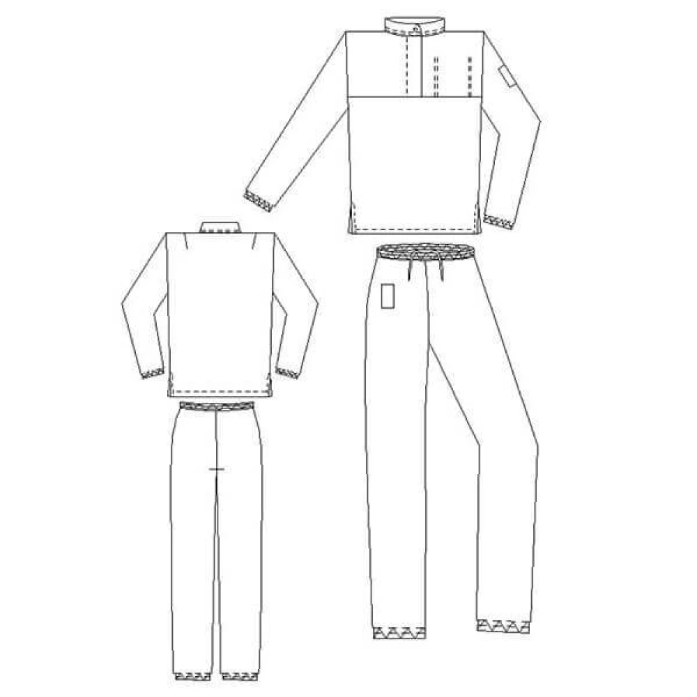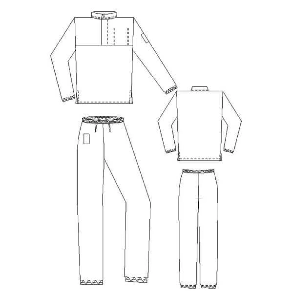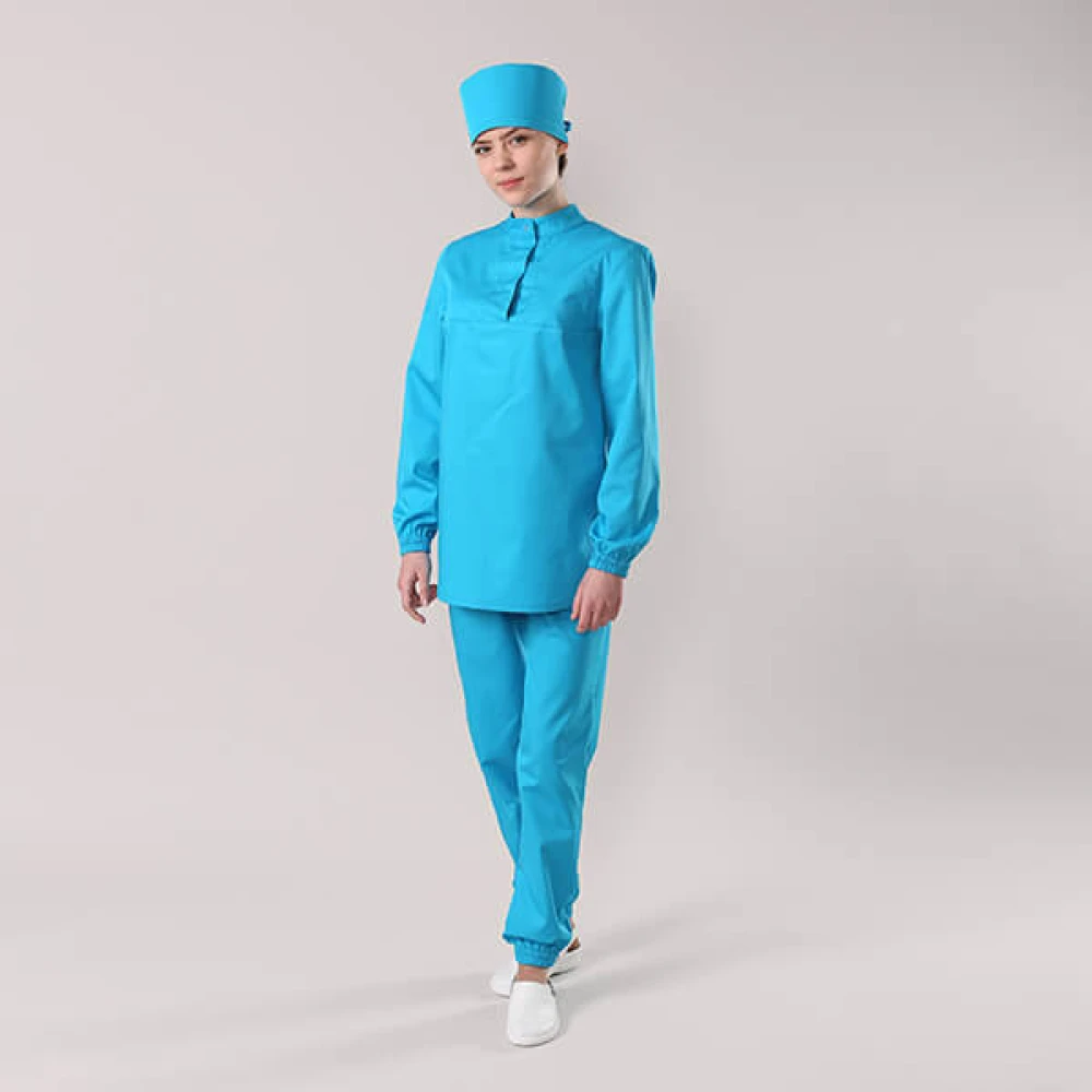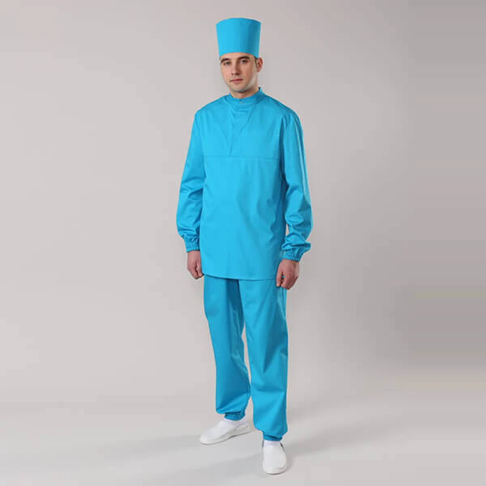 Костюм может быть изготовлен из полиэфирной ткани с углеродной нитью, полиэфирно — хлопковой ткани. Изделие подлежит стерилизации в стандартных режимах (120-132°С, 20-45 минут) и выдерживает не менее 75 циклов «стирка — стерилизация».